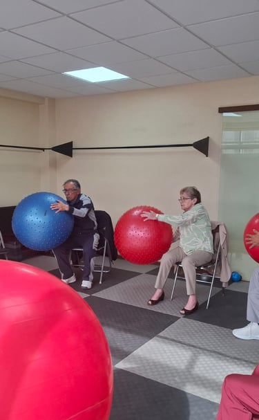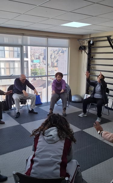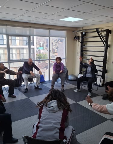 Ejercicios funcionales y terapéuticos para mejorar fuerza, equilibrio y movilidad. Prevención de caídas y rutinas que promueven la autonomía del adulto mayor.